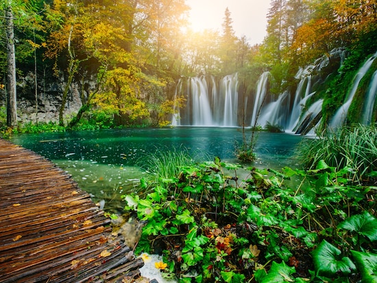 Plitvice Lakes National Park is a 295-sq.-km forest reserve in central Croatia. It’s known for a chain of 16 terraced lakes, joined by waterfalls, that extend into a limestone canyon. Walkways and hiking trails wind around and across the water, and an electric boat links the 12 upper and 4 lower lakes. The latter are the site of Veliki Slap, a 78m-high waterfall.
