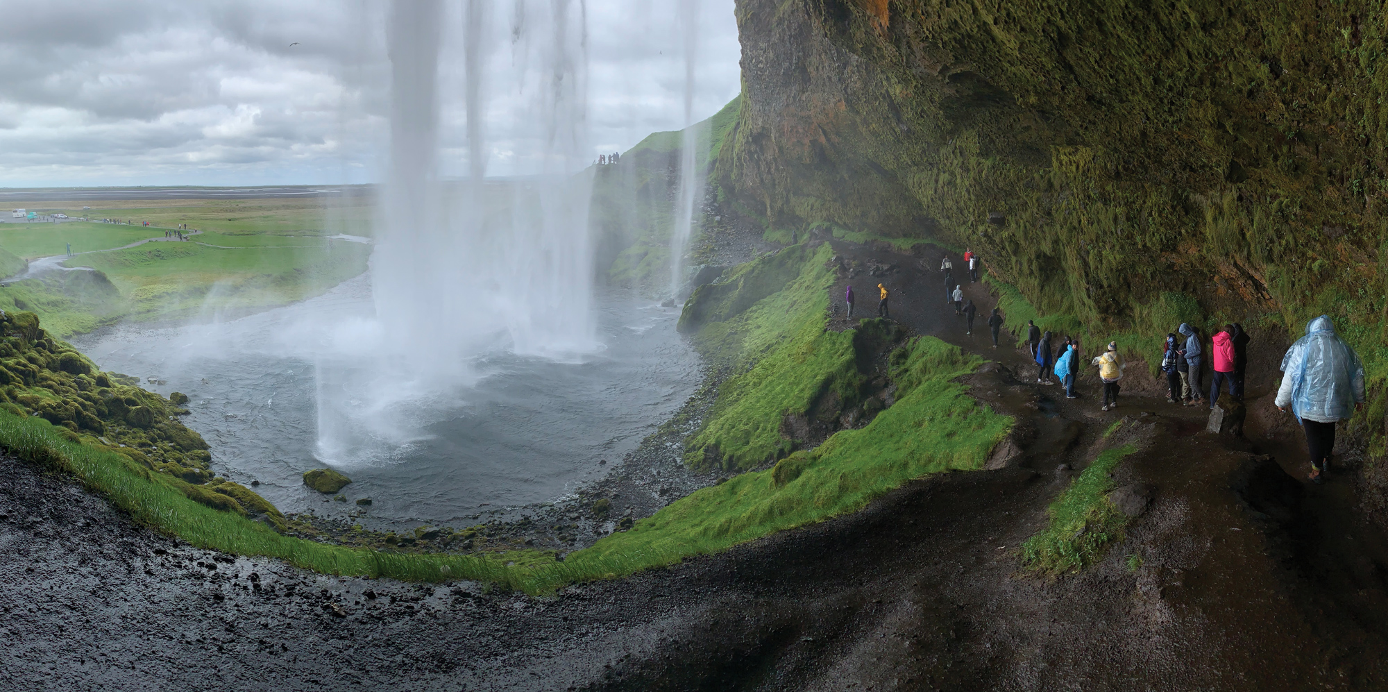 Seljalandsfoss is located in the South Region in Iceland right by Route 1 and the road that leads to Þórsmörk Road 249. The waterfall drops 60 m and is part of the Seljalands River that has its origin in our of the biggest volcano glaciers in Iceland. Seljalandsfoss can be viewed from all angles, as a walking trail passes behind the falls, and and also on the north, west and east sides of the falls.