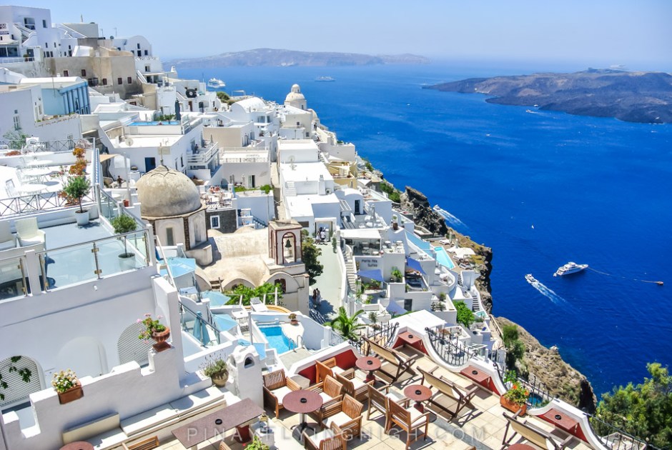 Santorini is one of the Cyclades islands in the Aegean Sea in the South of Greece. The whitewashed, cubiform houses of its 2 principal towns, Fira and Oia, cling to cliffs above an underwater caldera (crater). They overlook the sea, small islands to the west and beaches made up of black, red and white lava pebbles. The island was the site of one of the largest volcanic eruptions in recorded history: the Minoan eruption (sometimes called the Thera eruption), which occurred about 3,600 years ago at the height of the Minoan civilization.