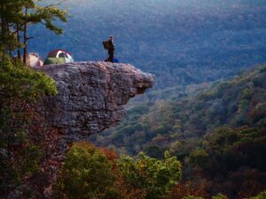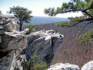 It is on Mount Magazine which is the highest point in Arkansas at 2700 feet. Its along Route 209 and lead to overlooks with expansive views of Blue Mountain Lake and the Ouachita Mountains to the south and of the Arkansas River Valley and the Ozark Mountains to the north. A park trail provides access to the state’s high point.