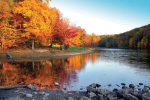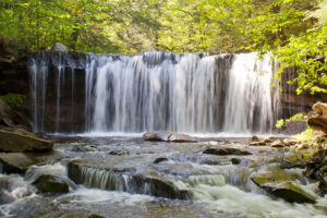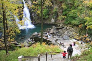 It a waterfall in Bash Bish Falls State Park in the Taconic Mountains of southwestern Massachusetts, US, is the highest waterfall in the state. Fronting the waterfall is a deep emerald plunge pool contrasting the plethora of Autumn colors.