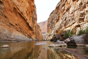 It is one of the best-known natural features in Big Bend National Park. A short nature trail enters its shady depths, 8 miles west of Castolon, accessible by either Ross Maxwell Scenic Drive or the Old Maverick Road. The nature trail crosses Terlingua Creek, climbs several flights of ramps and stairs and then descends into the canyon along the Rio Grande. At this point the canyon walls loom over 1500 feet above the river below.