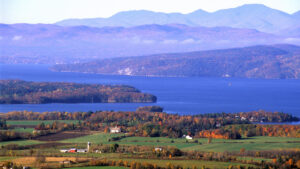 Lake Champlain is a natural freshwater lake i mainly in Vermont but also across the Canada–U.S. border into the Canadian province of Quebec. The Vermont portion of the Champlain Valley includes the eastern portions of Clinton County and Essex County.