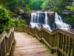 Blackwater Falls State Park is located in the Allegheny Mountains of Tucker County, West Virginia, USA. The centerpiece of the park is Blackwater Falls, a 62-foot cascade where the Blackwater River leaves its leisurely course in Canaan Valley and enters rugged Blackwater Canyon.
